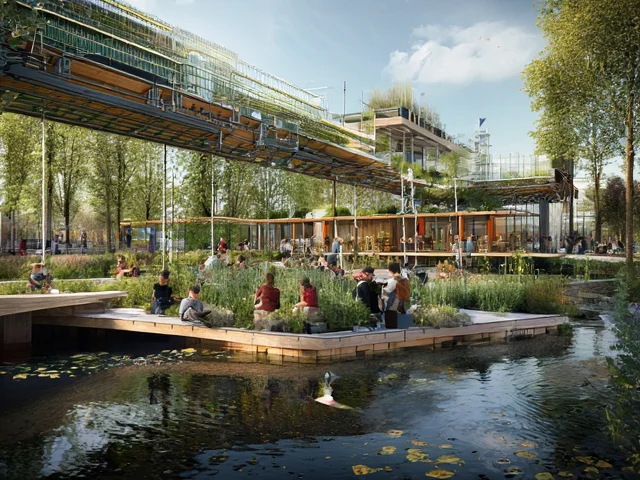 The environment in the university is unique – the main building is the biggest greenhouse in Western Europe with a height of 23 meters. Two smaller buildings with wood-covered concrete oors and stone walls are located inside the greenhouse. There are various classrooms, a library and large study areas, where students can work on their