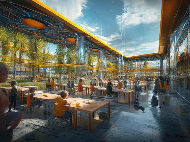 В архитектурен план училищата ще са енергийно независими. По този начин ще се реализира връзката между живота и научното познание. Традиционните училища ще се трансформират във високо дигитализирани образователни центрове, които ще преминат на 24-часов режим на работа, седем дни в седмицата. За осигуряване развитието на социални умения посещението на тези образователни центрове ще е задължително.