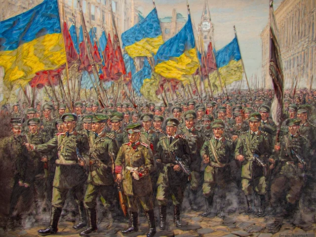 Подписаното от германската делегация на 11 ноември 1918 г. примирие на условията, продиктувани от държавите от Антантата, заявление на Съветска Русия на 13 ноември 1918 г. за анулиране на Брест-Литовския договор между Русия и Централните сили и на подписания от нея на 3 март 1918 г. Брест-Литовския мирен договор с Германия променят по-нататъшната съдба на украинската държава, превърналата се от победител в победената страна. Последва навлизане в Украйна на полски войски и на Доброволческата армията на ген. А. Деникин (командващ Въоръжените сили на Юга на Русия по време на Гражданска война 1918 – 1920 г.) която към края на 1918 г. завладява по-голямата част от Украйна. В края на 1919 г. деникинци са изместени от Червената армия.
