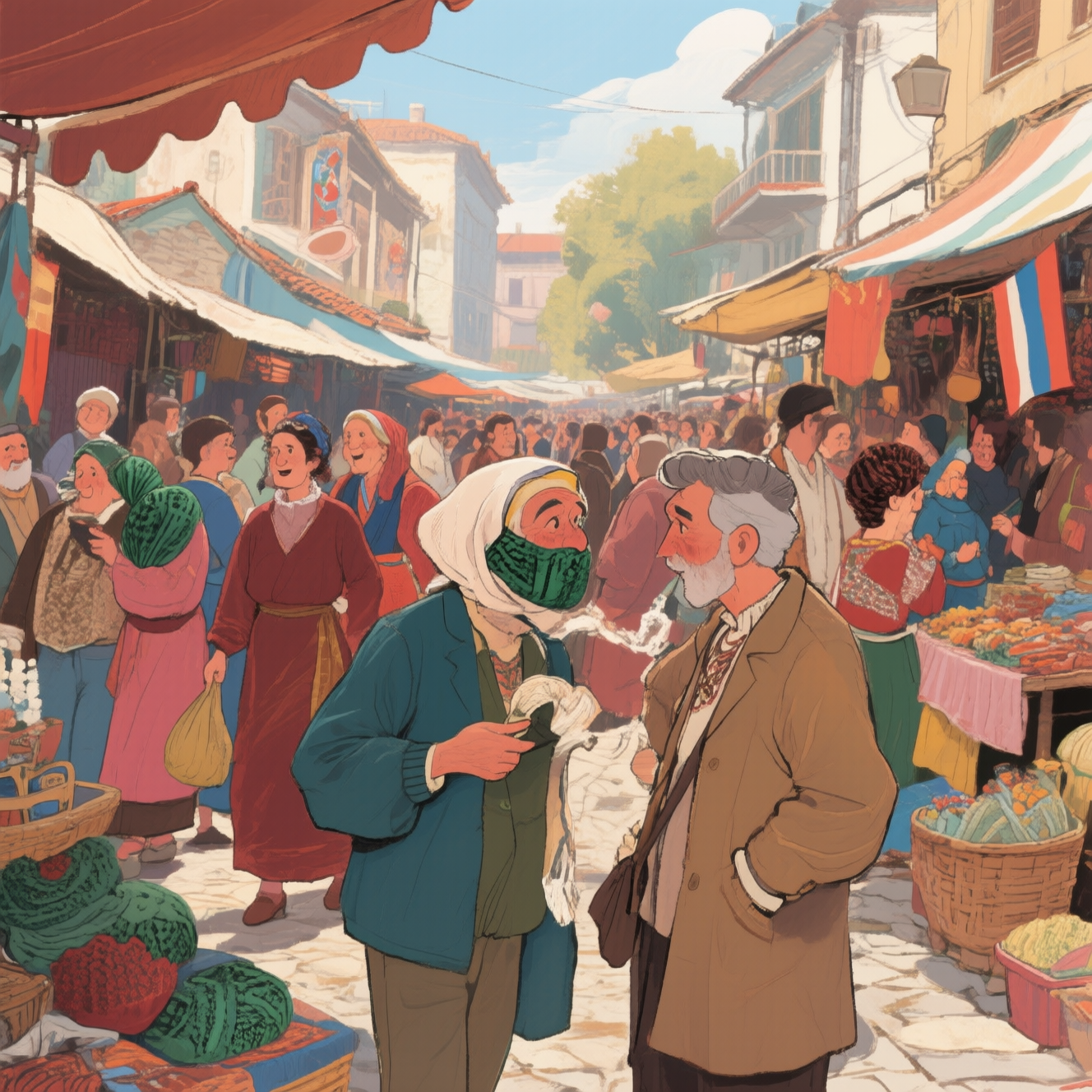 B: Aynen öyle, sağlıklı bir şekilde ще продължим всички заедно. Atlattık yani. (Aynen öyle, sağlıklı bir şekilde her şeye brlkte devam edeceğz. Atlattık yani) (Точно така, живи и здрави ще продължим всички заедно. Сиреч преодоляхме го.)