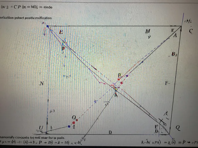 Задача 2. В изпъкналия четириъгълник \(A B C D\) средите на диагоналите \(A C\) и \(B D\) са съответно \(E\) и \(F\), а продълженията на страните \(A D\) и \(B C\) се пресичат в точка \(U(D\) лежи между \(A\) и \(U)\). Ако \(M=U E \cap A B, N=U F \cap A B, P=U F \cap C D\) и \(Q=U E \cap C D\), да се докаже, че: а) \(\cfrac{A M}{B M}=\cfrac{C P}{D P}\); б) \(M P \| A D\) и \(N Q \| B C\).