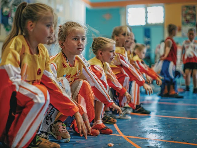 Всяко занимание започва с подготвителна част – разгряване. Тук се включват упражнения от гимнастиката и акробатиката. Извършва се функционалната подготовка, като постепенно се повишава интензивността на двигателното натоварване с цел разгряване на детския организъм, концентриране вниманието на децата и запознаване със задачите за предстоящото конкретно занимание.